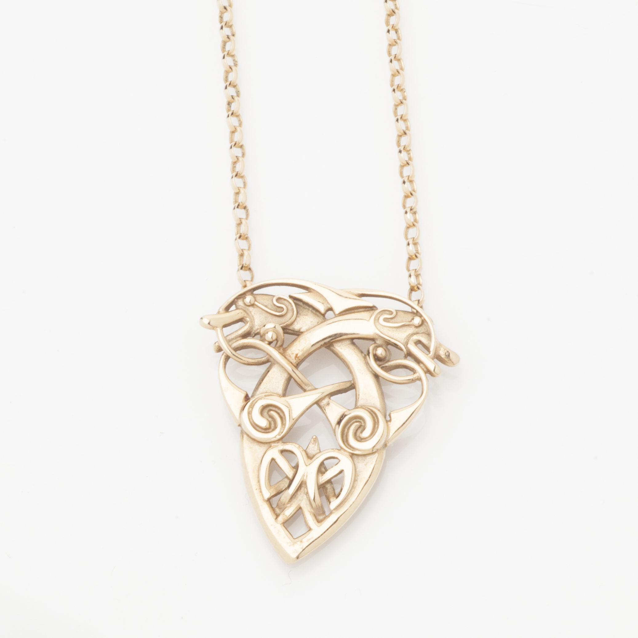 of interwoven Celtic design with integral belcher link chain