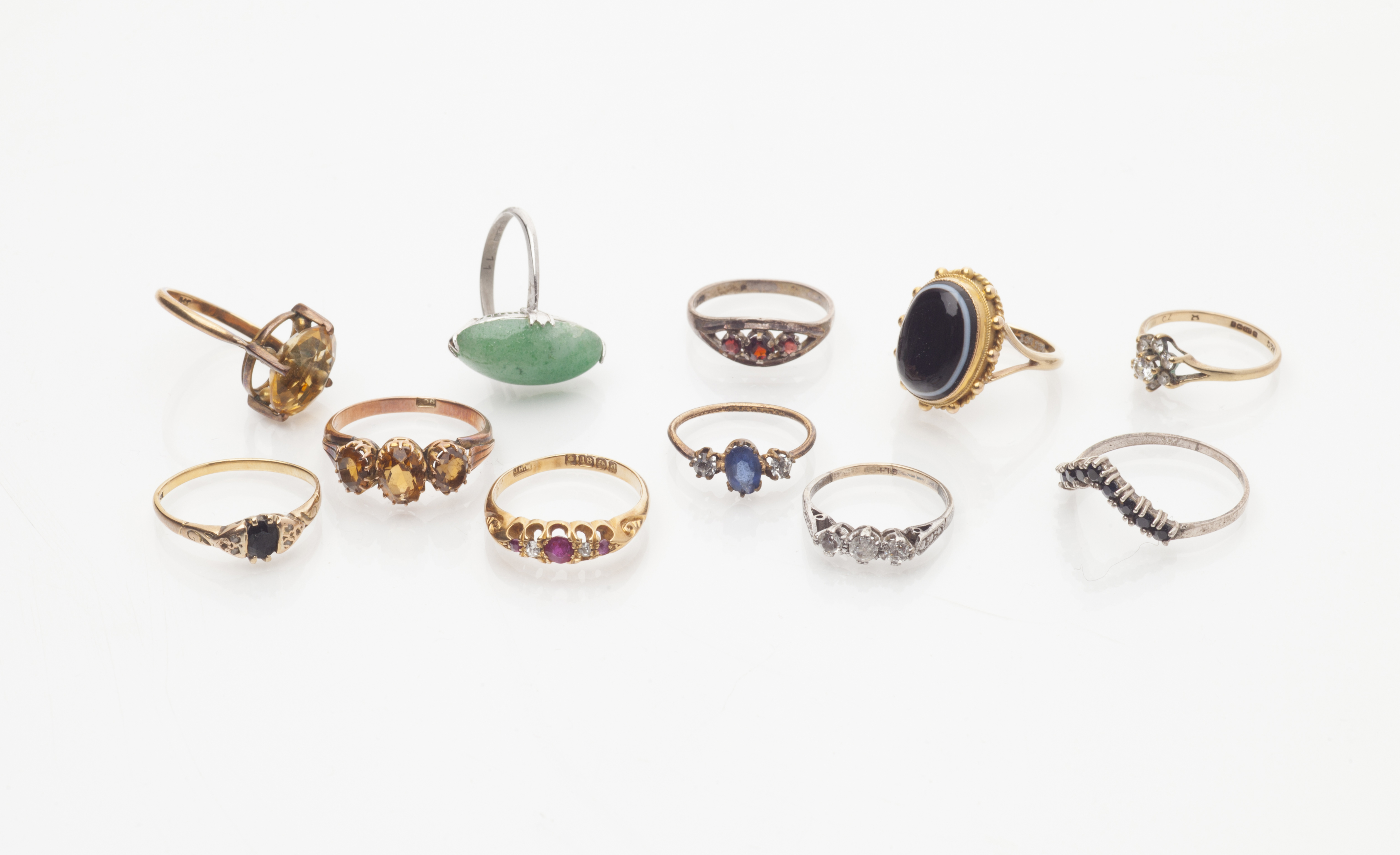 A collection of gem set rings