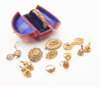 to include a yellow metal bangle with applied filigree detail; two oval yellow metal brooches with gem set detail and glazed pannels to the rear; three yellow metal and gem set rings; various other gem set brooches and earrings (qty)