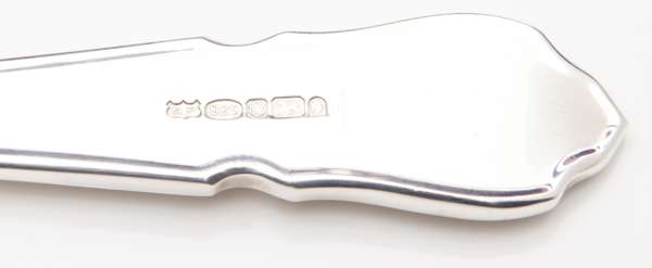 Arthur Price, Sheffield 2002, of Hour glass and shell variant, comprising six each of table, soup, dessert, coffee and teaspoons, table and dessert forks, with two serving spoons and ensuite knives, in original fitted canteen