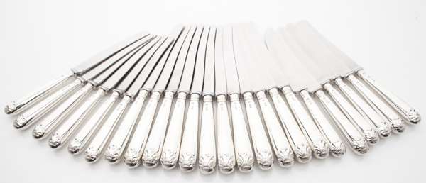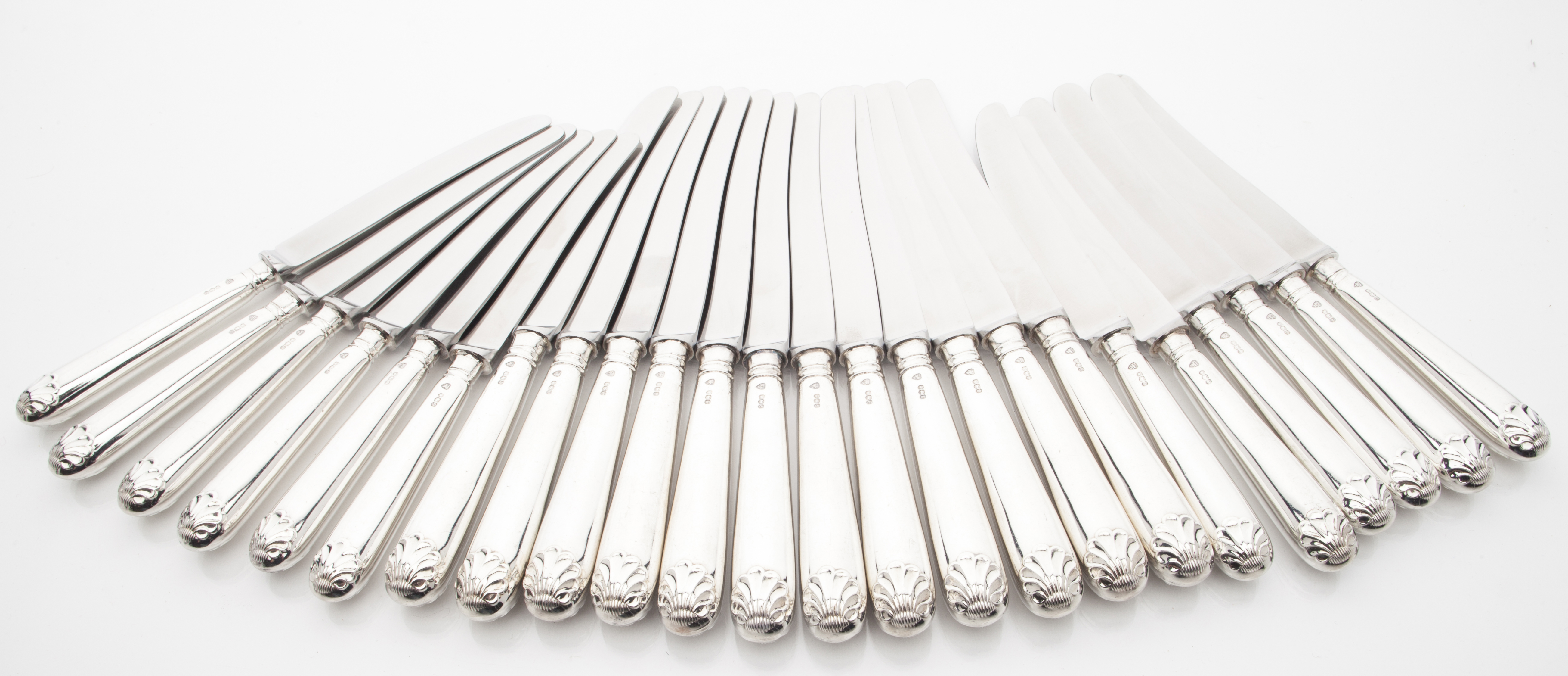 HH, Sheffield 1972, comprising twelve table knives and twelve side knives, with shell detail to terminal (24)
