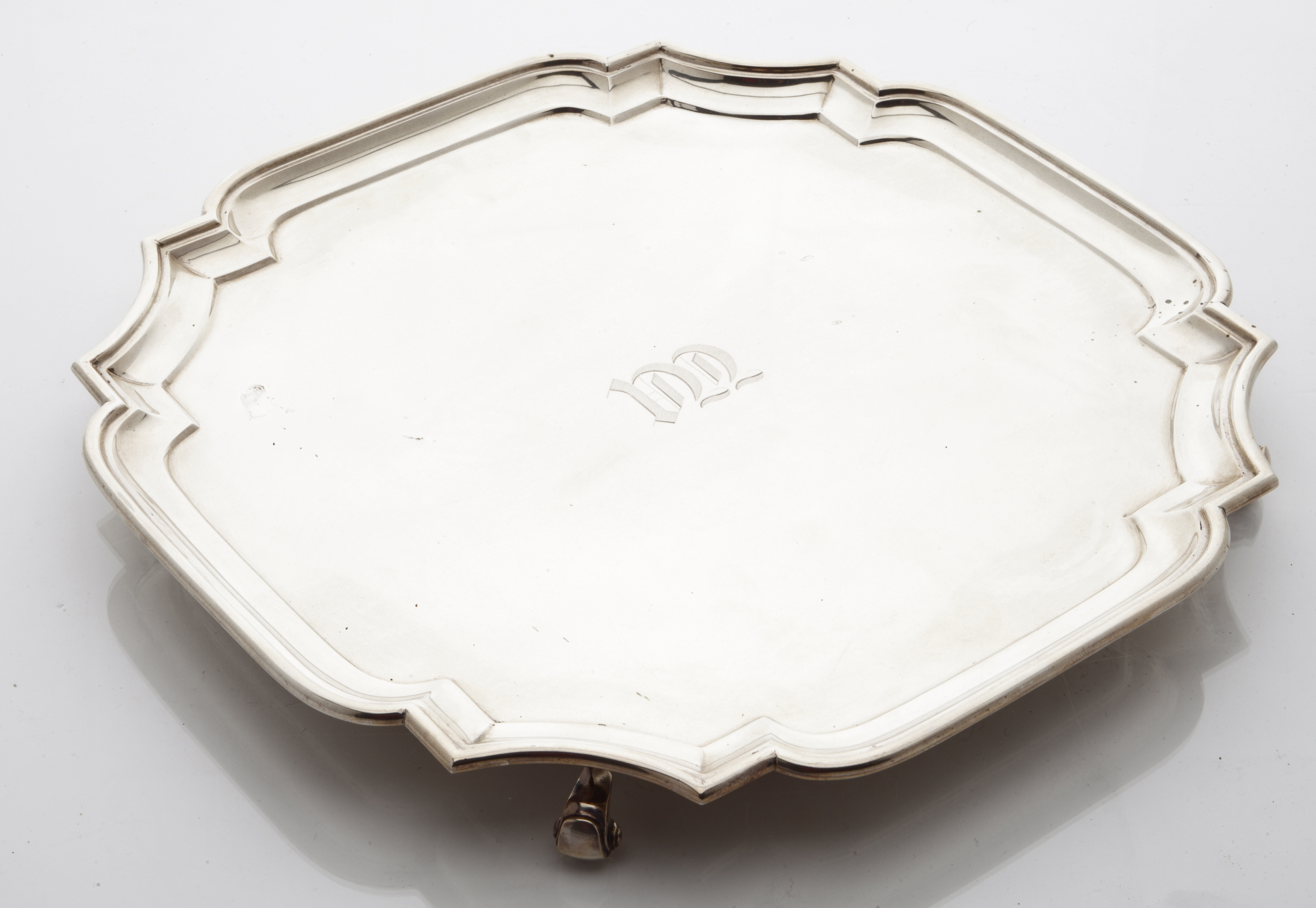 Edward and Sons, Glasgow, 1938, re-entrant corners, engraved initial, all on four scrolling feet