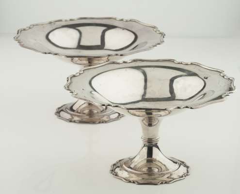 R & W Sorley, London 1906, of circular outline with scalloped rim, to a raised swept circular foot with similar scalloped detail (2)