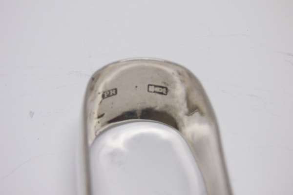 The striking of the makers marks appears to only be PR, rather than the more commonly found IPR, while it is possible that it represents a period when Patrick Riach is working alone it is also possible that it is a poorly struck punch on the curve of the bow.