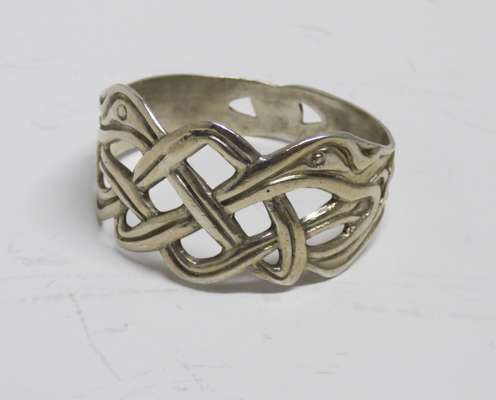 Alexander Ritchie, marked AR (incuse), IONA, IONA (incuse), ICA, Birmingham 1911, of cast open work form of intertwined Celtic birds