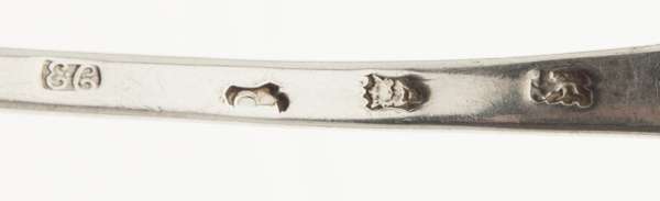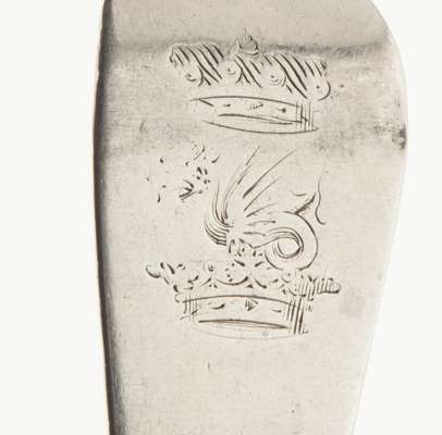 Ebenezer Coker, London 1750, of Hanoverian pattern with engraved crest to terminal (2)