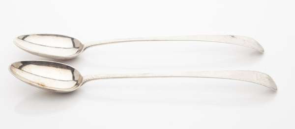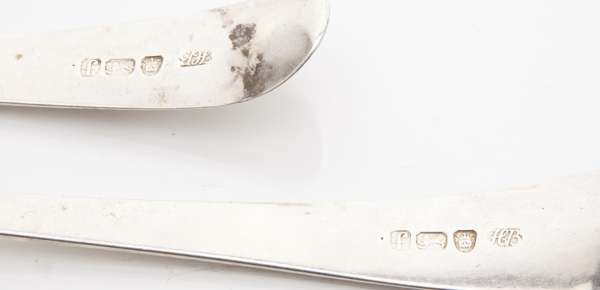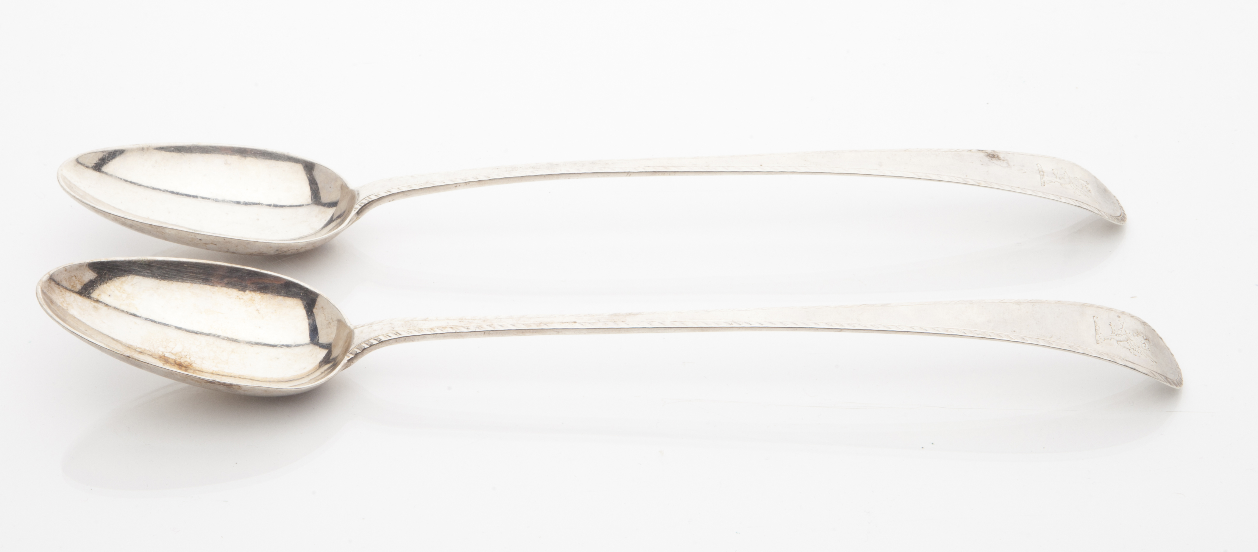 Hester Bateman London 1781, of Old English pattern with feathered edge decoration and engraved crest (2)