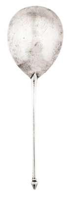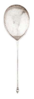 The Diamond Point spoon survives from as early as the late 13th century and took over as the most popular and prolific pattern from the Acorn knop. It is a pattern known in England and on the Continent and is commonly seen unmarked, such as this example. The earliest fully hallmarked example is dated London 1498, although various marked examples, lacking date letters, are known giving confidence in the dating of unmarked examples.