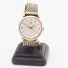 automatic movement, off white dial, baton and Arabic numerals, sweep second hand, with a woven gold bracelet, sprung fold over clip action