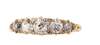 claw set with five graduated old round cut diamonds, spaced with pairs of small diamond chips, to a plain metal shank with scrolling gallery and shoulders, shank stamped 18CT