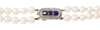 composed of two strands of uniform cultured pearls, the clasp set with three sapphires in a double row of small eight cut diamonds, unmarked