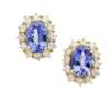 each claw set with an oval Tanzanite in a single border of small round brilliant cut diamonds, to post and butterfly fittings