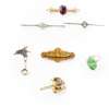to include a yellow metal amethyst set brooch, stamped 15ct; a carved jade set ring, a yellow metal citrine set brooch; a 15ct gold Victorian diamond and sapphire set brooch; two further gem set bar brooches and a citrine set pendant necklace (qty)