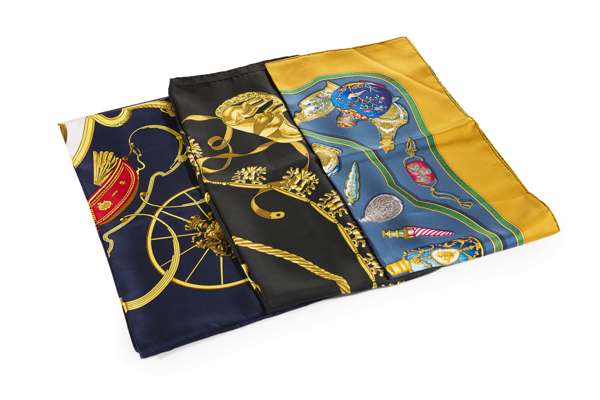 HERMES - Three silk patterned scarfs