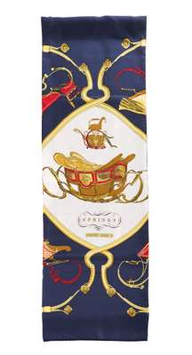 the first of black silk, circa 1975 titled 'Caralien d'Or'; the second circa 1988, of blue silk titles 'Qu'Import le Flacon'; together with another of longer rectangular form, circa 1974 of blue silk, titles 'Springs' (3)