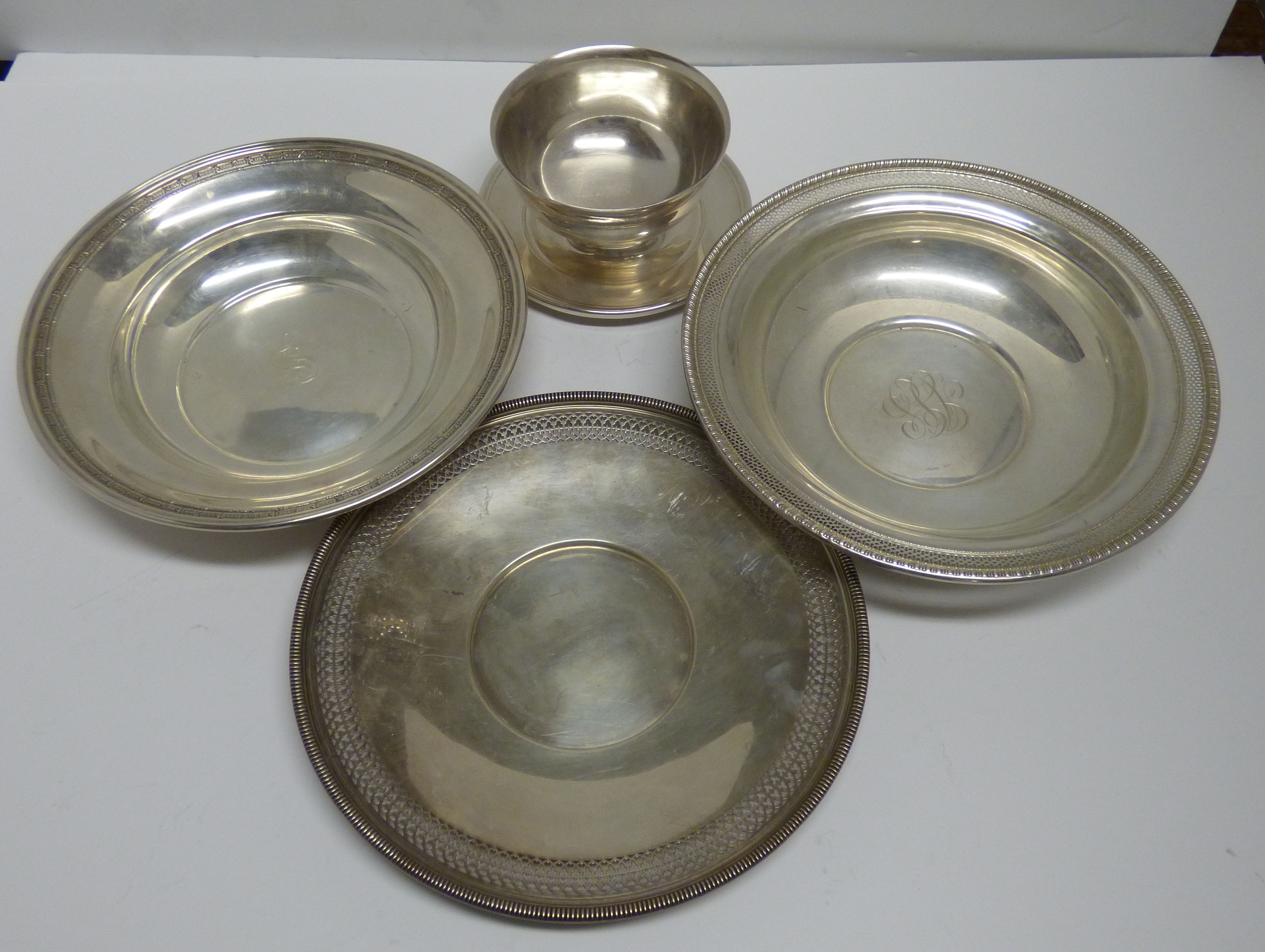 each marked Sterling (American), retailers being Gorham, Caldwell & Co. Elgin American, of circular form, gadroon borders, pierced borders (4)