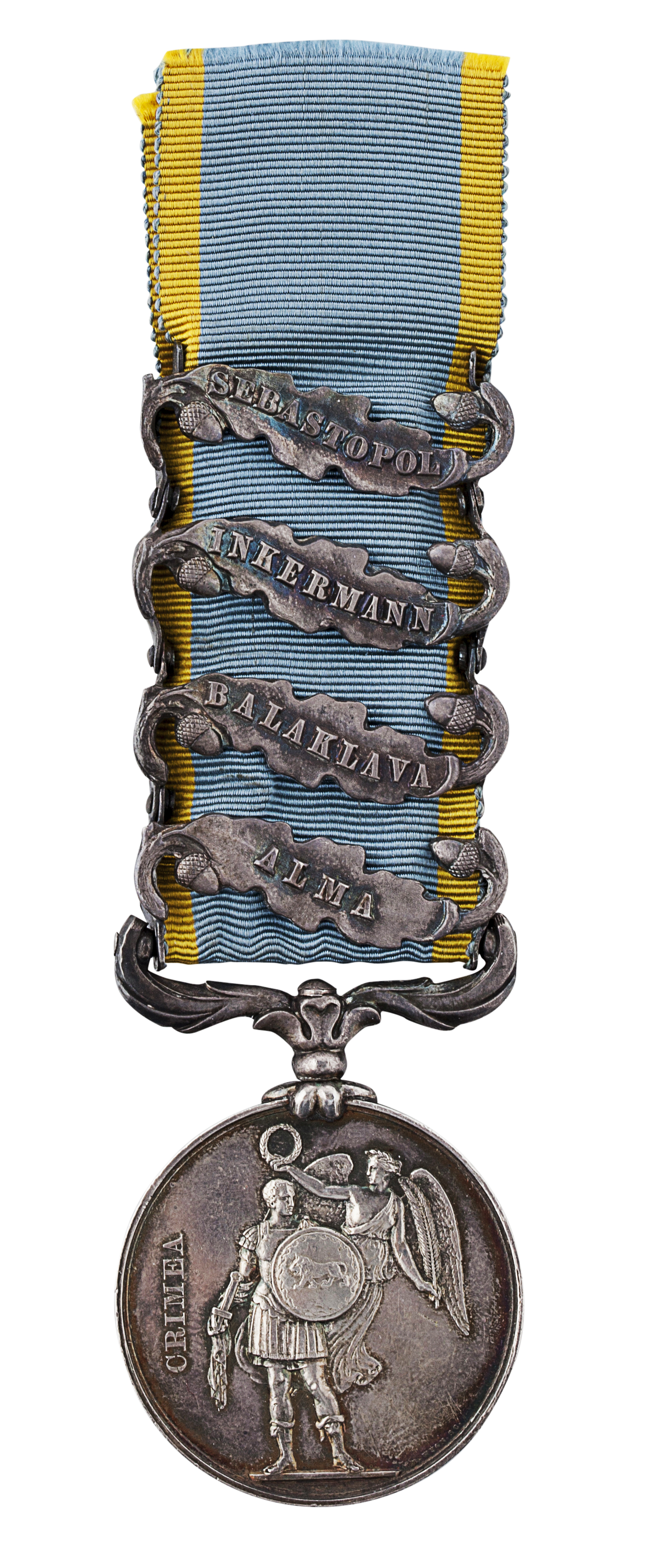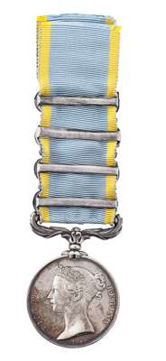Crimea medal, 1854, named, bars for Alma, Balaklava, Inkermann, Sebastopol; Turkish Crimea medal, unnamed, wire hoop suspension, in a later fitted box