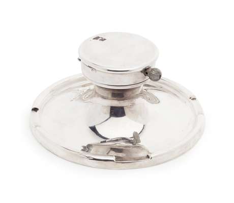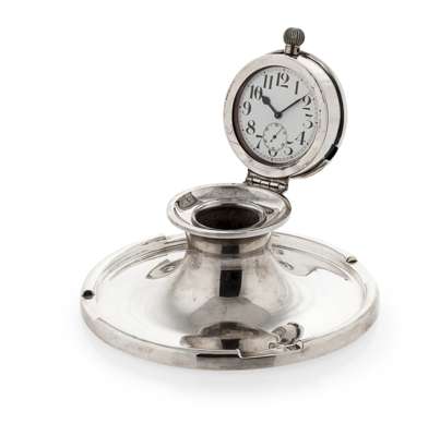 A large table inkwell with watch