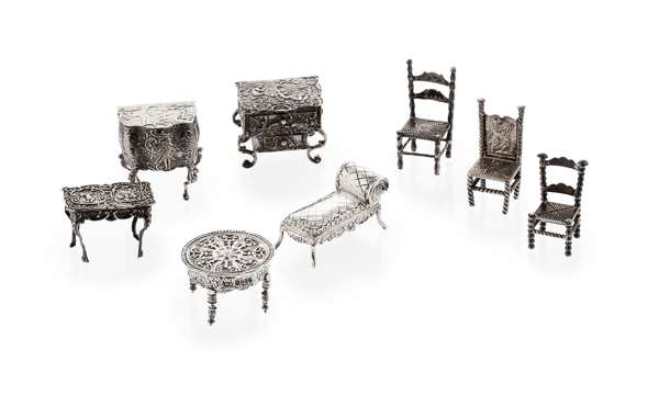 A collection of Dutch 19th century miniature silver furniture