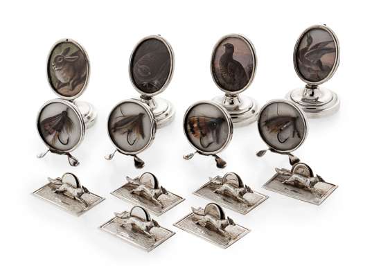 various dates and makers, four with game birds, four with fishing flies, six with cast running foxes, two spirit labels (qty)
