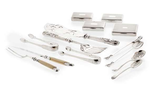 TD & S, Birmingham, modern, of plain rectangular form, all over engine turned decoration, blank cartouches; together with a miscellaneous group of silver servers and other items (qty)