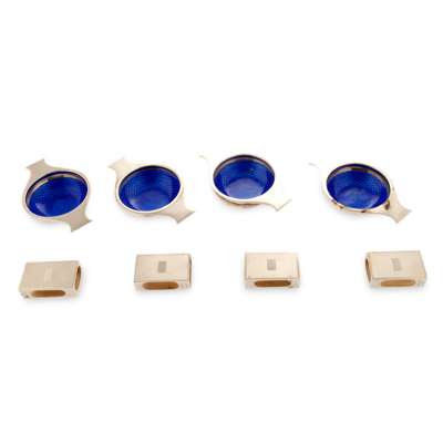 A set of four silver and enamel quaichs