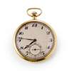 plain open face, keyless wind, off white dial, Arabic numerals, lever movement signed and bi metallic balance