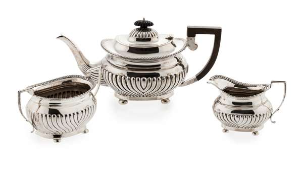 Birmingham 1958, of oval form, demi-ribbed, gadroon border, all on bun feet (3)