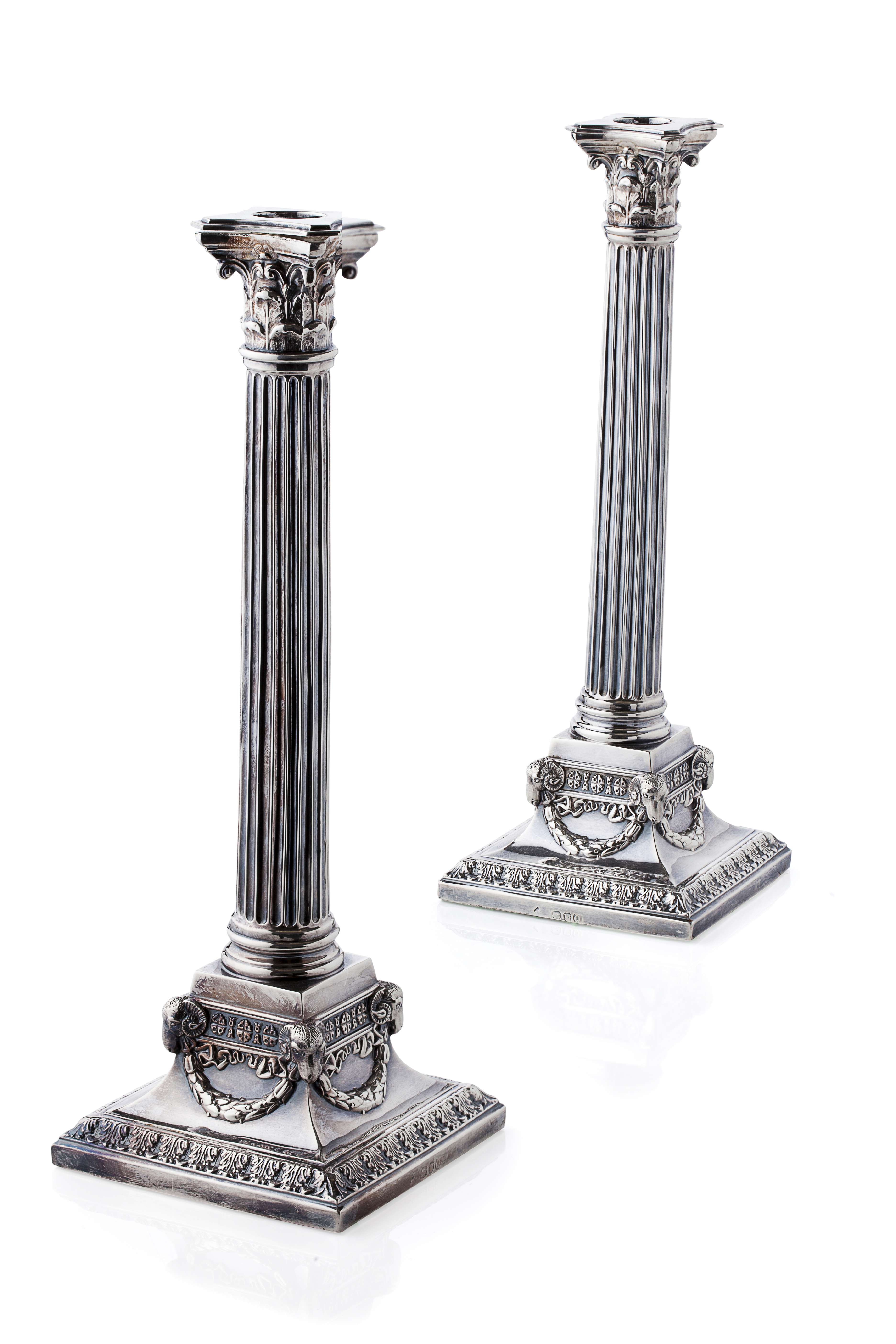 London 1891, of typical form, ram's head motifs to the square bases, stepped (loaded)