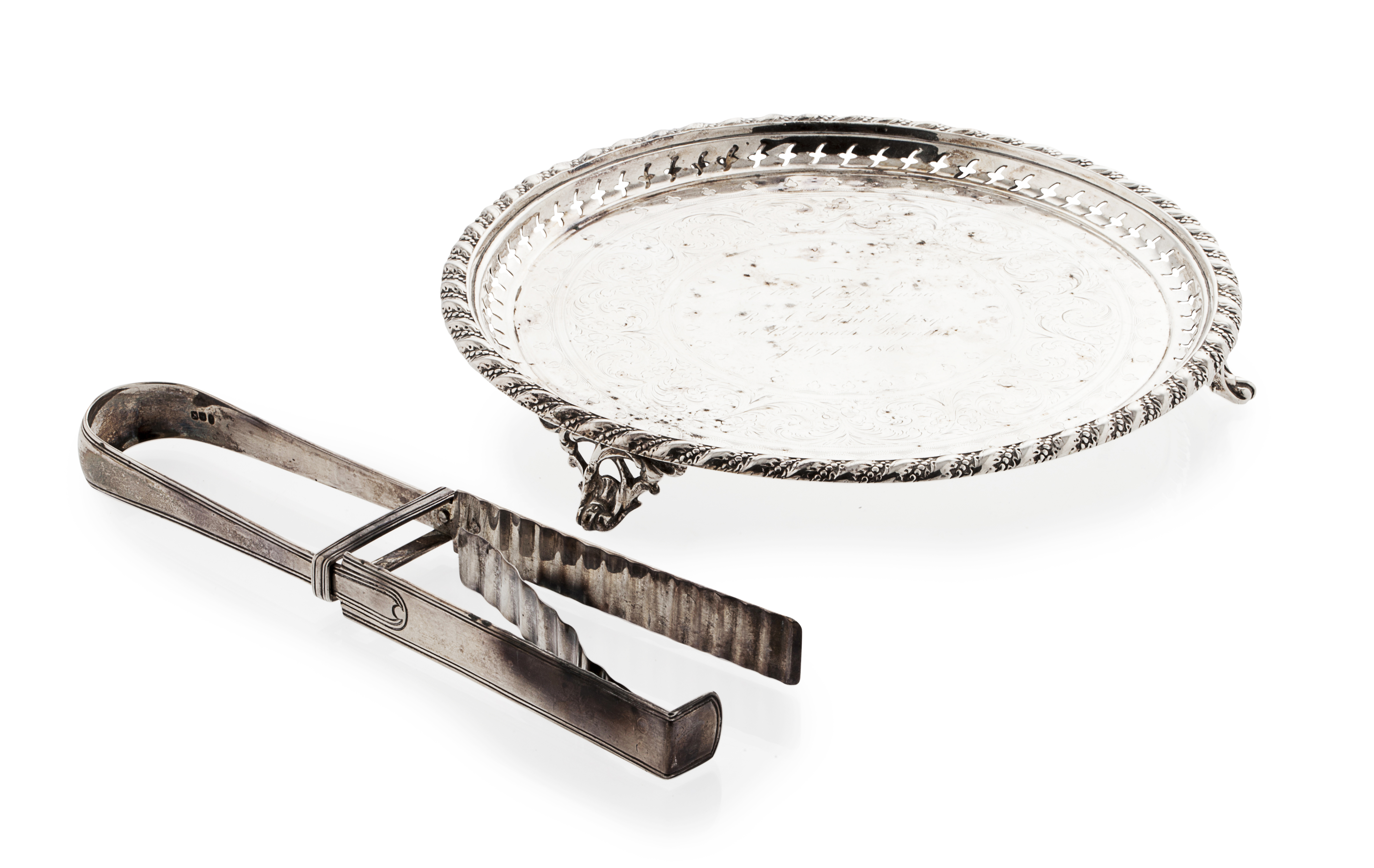 London 1868, engraved inscription 'Won by Yacht Luna….. 1868' together with a pair of asparagus tongs, Eley and Fearn, London 1805, plain, engraved crest, threaded border