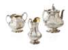 Joseph and Albert Savory, London 1850, of octagonal baluster form, all over Chinoiserie style engraved decoration, leaf clasped scrolling spout, comprising teapot, sugar and cream