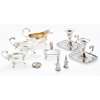 to include a cream boat, Charles Stuart Harris, London, 1895 of oval outline with slight bellied body, plain everted scalloped rim, wide pouring spout, the S scroll handle, raised on three hoofed feet, another smaller similar cream boat, Alexander Clark & Co Ltd, Birmingham 1939, together with a pair of plated chambersticks, one clan badge, one plated silver sauce boat and one plated bed warming pan (7)