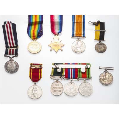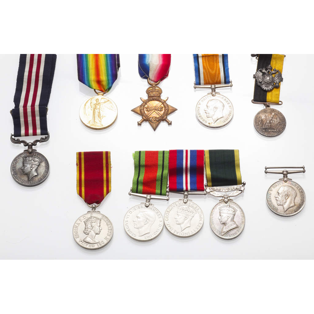 to Fusilier J Devine, Royal Fusiliers; together with Exemplary Fire Service medal to Leading Fireman Duff L McGregor; a WWI trio to W Bain, 2nd Scot's Highlanders; 1914 - 18 war medal; WWII group of three to CFN, Dawson REME., Defence medal, War Medal, Territorial Efficient service medal, WWI Coalition of four Empire medal