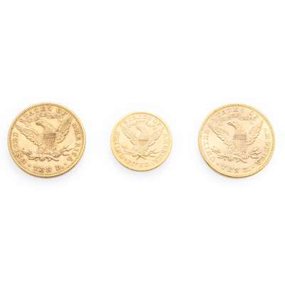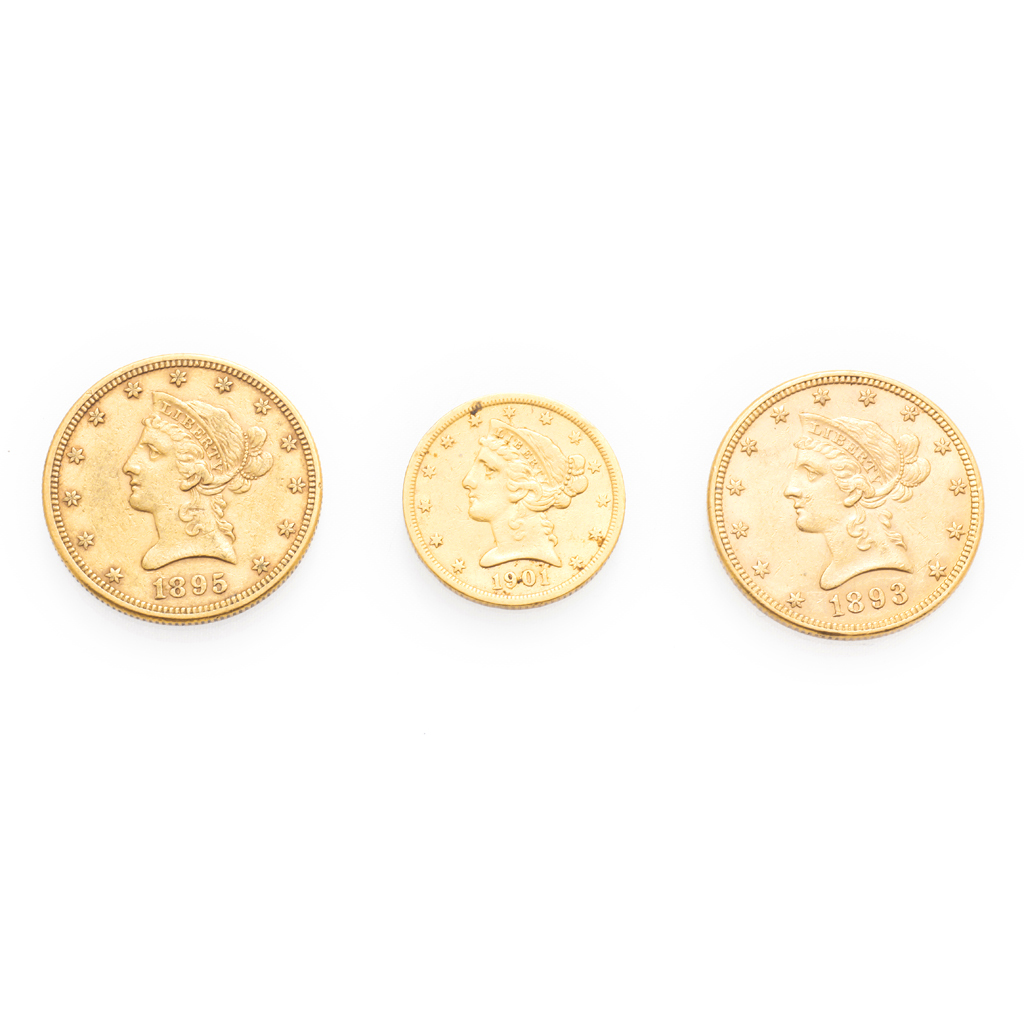 Liberty $10 1893; Liberty $10 1895; Liberty $5 1901