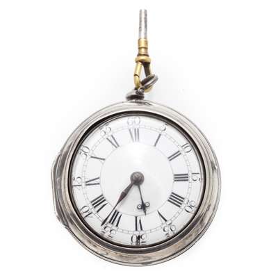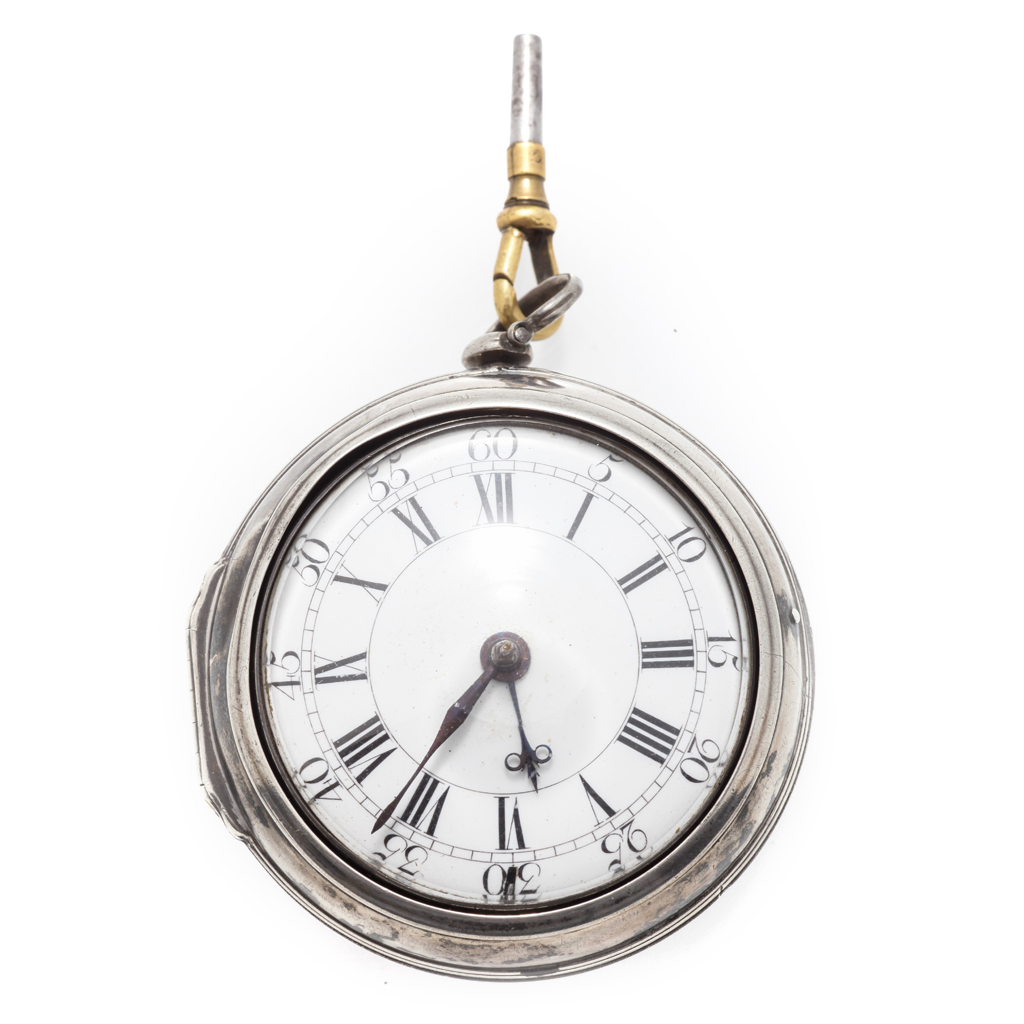 J WILLIAMSON - A silver pair cased verge pocket watch