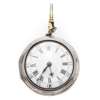 the outer case plain, (unmarked), inner case also plain, maker's incuse mark GW, the white enamel dial with outer Arabic and larger inner Roman numerals, blued hands, the movement signed J Williamson, London and numbered 335, all on decorated square baluster pillars