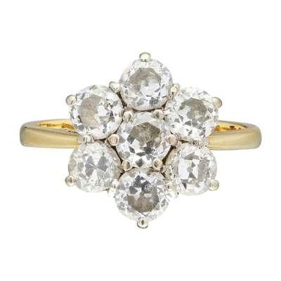 claw set with seven round cut diamonds, to a plain 18ct gold shank