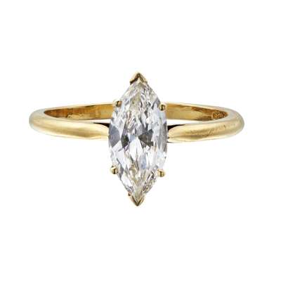 claw set with a single marquise cut diamond, to a plain 18ct gold band