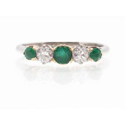 A five stone emerald and diamond set ring