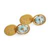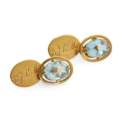 each with a principal oval terminal claw set with an oval cut aquamarine, the secondary oval terminal with engraved initials, with belcher links, stamped 22CT