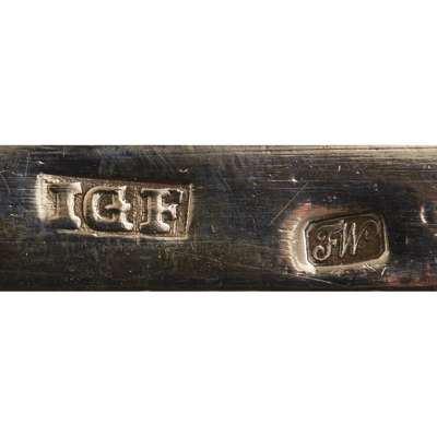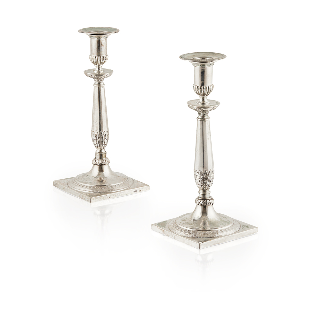 Possibly Augsburg, circa 1790, of circular baluster form, leaf clasped stem, square base with engraved anthemion border