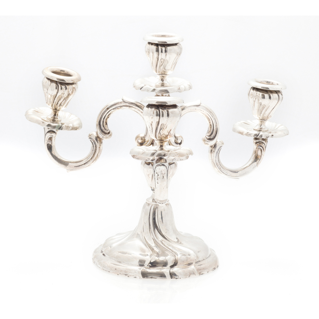 German marks, marked 830, the three scrolling branches eminating from central sconce, raised on a short round footed stem