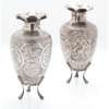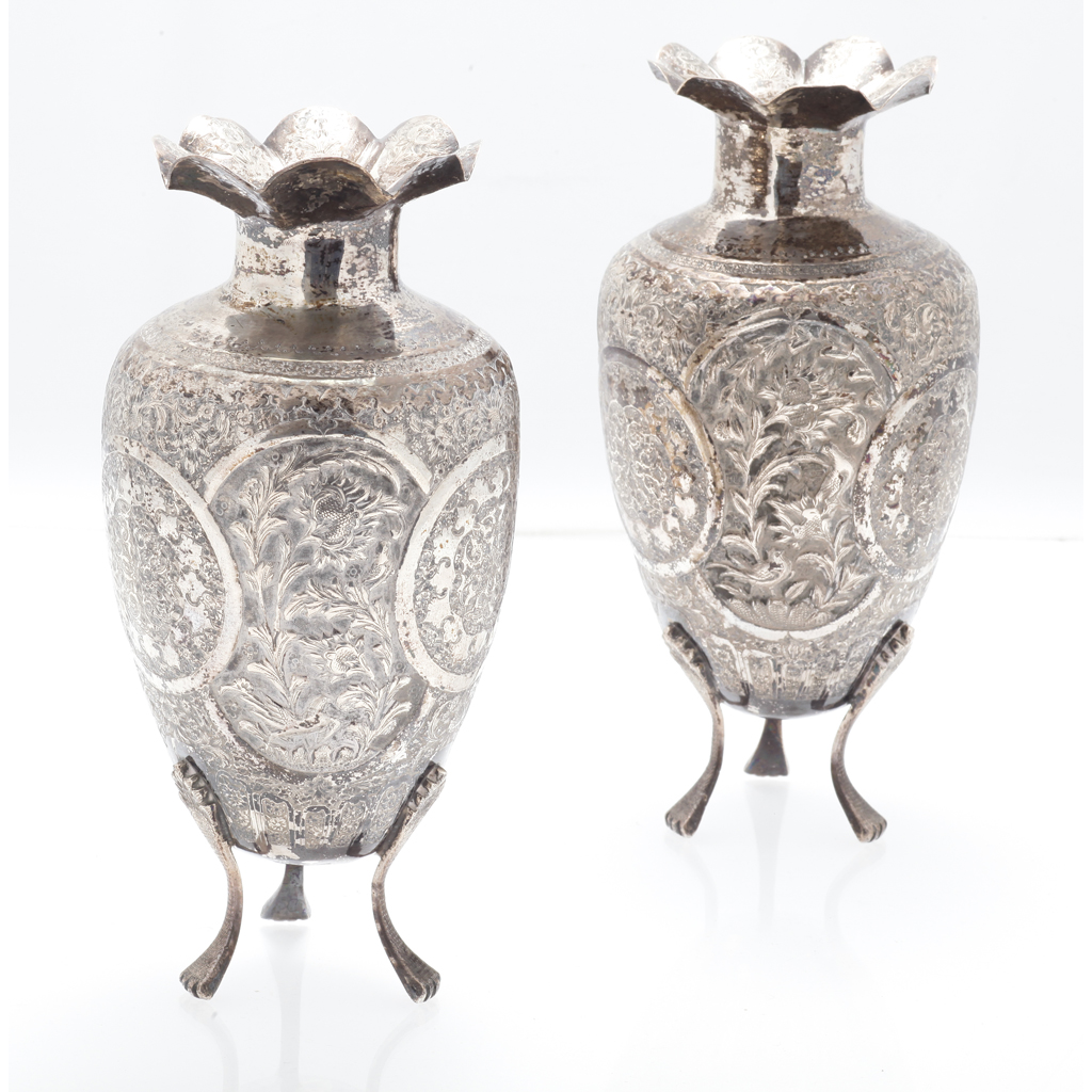 with various marks to neck and base, flared rim, to a baluster body, allover chased decoration with reserve panels of flowers and decorative motifs, all on cabriole legs
