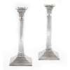 B & Co. Birmingham 1989, of classic Corinthian column design, fluted column, pull off drip sconces, raised on beaded stepped square bases