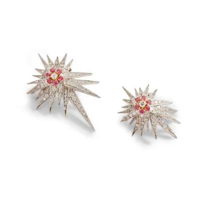 A diamond 'Skyran She' brooch and matching earrings, by Sheila Fleet