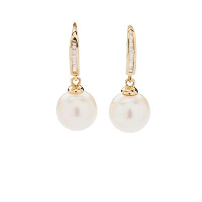 A pair of cultured pearl and diamond pendent earrings