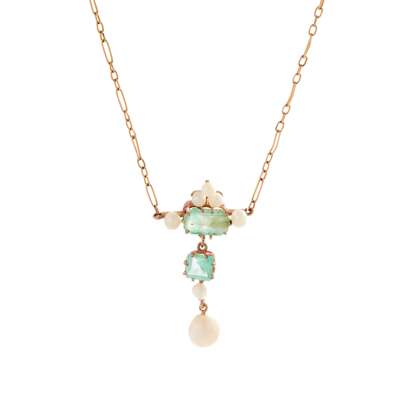 An emerald and pearl pendant necklace