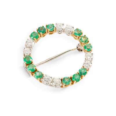 An emerald and diamond brooch