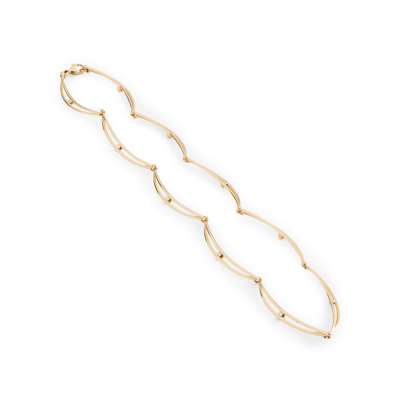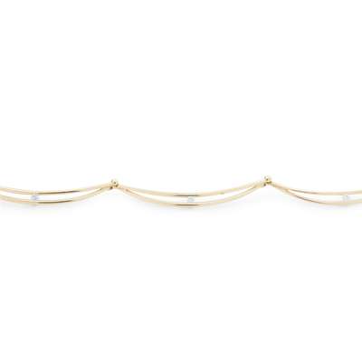 composed of scalloped links, each set with a small round brilliant-cut diamond, modelled in 18ct gold