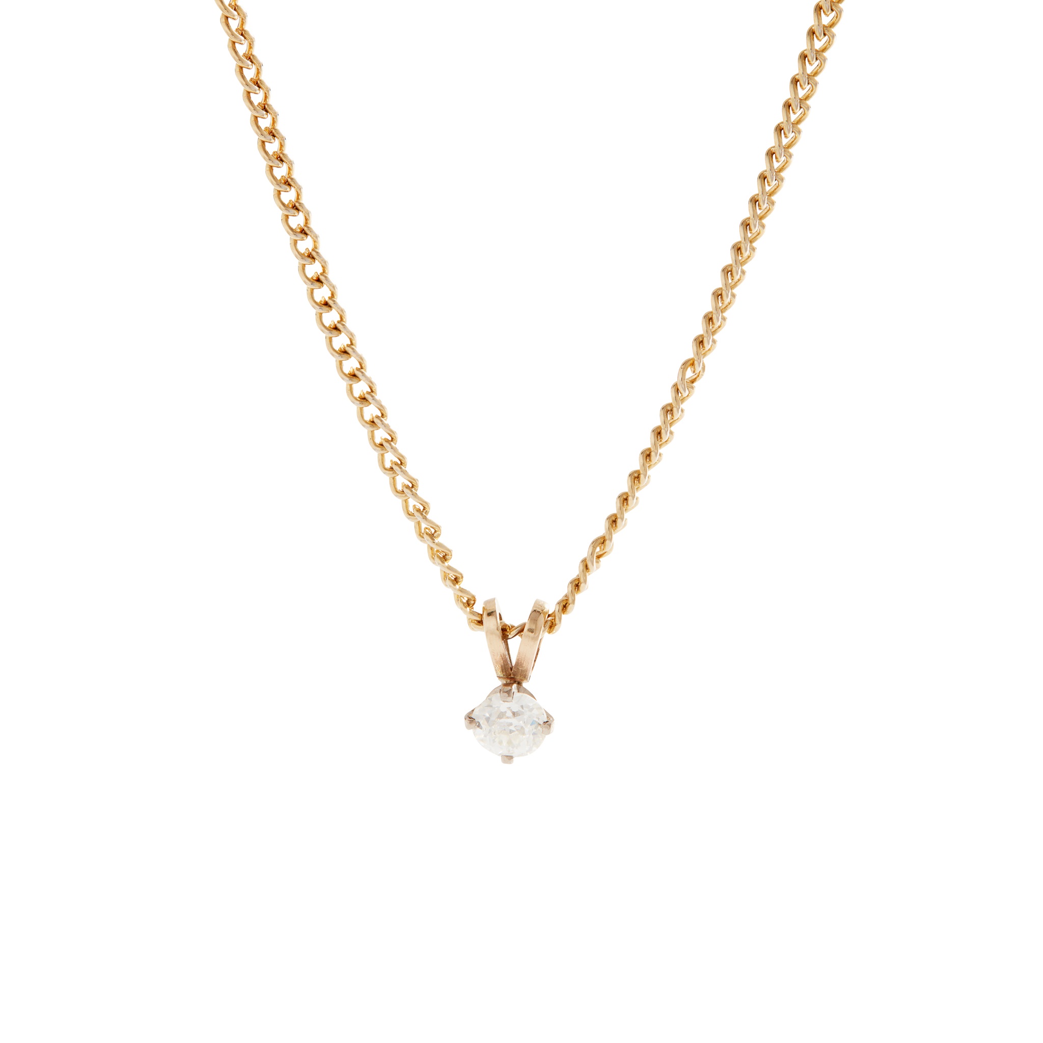 claw-set with a single old round-cut diamond, to a trace link chain, unmarked